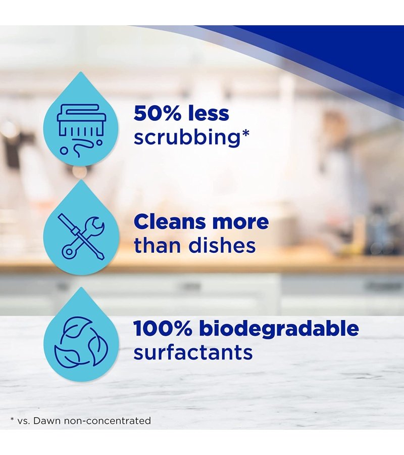 Contains 3x Grease Cleaning Power (cleaning ingredients per drop vs. Dawn Non-Concentrated)