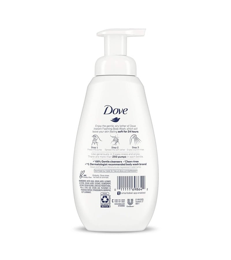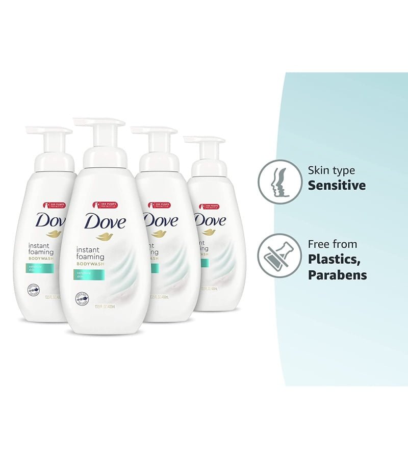 Dove Instant Foaming Body Wash for Softer and Smoother Skin Sensitive Skin Effectively Washes Away Bacteria While Nourishing Your Skin 13.5 oz
