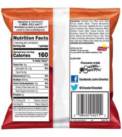 40 single serve favorites – Doritos Nacho Cheese. Doritos Cool Ranch. Lay’s Sour Cream & Onion. Rold Gold Tiny Twists. Smartfood White Cheddar Popcorn. Cheetos Crunchy. Cheetos Puffs. and Sunchips Harvest Cheddar