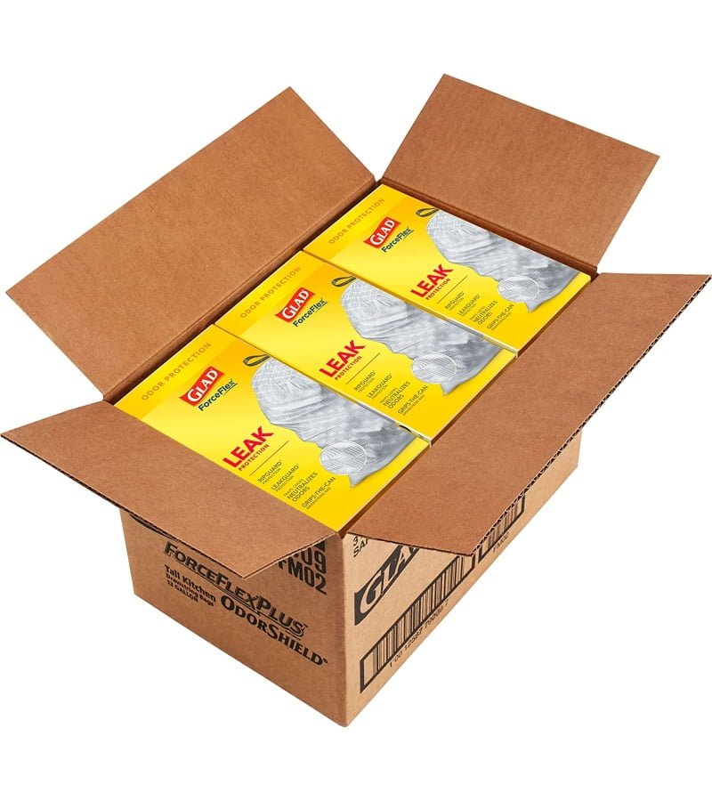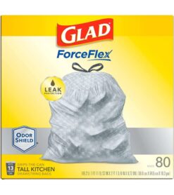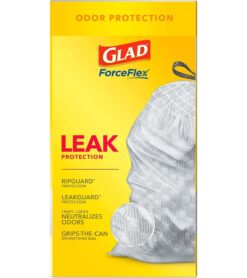 13 GALLON PLASTIC TRASH BAGS: Kitchen trash has never smelled better. Glad ForceFlex Kitchen trash bags with odor protection continuously neutralizes odors; Packaging may vary