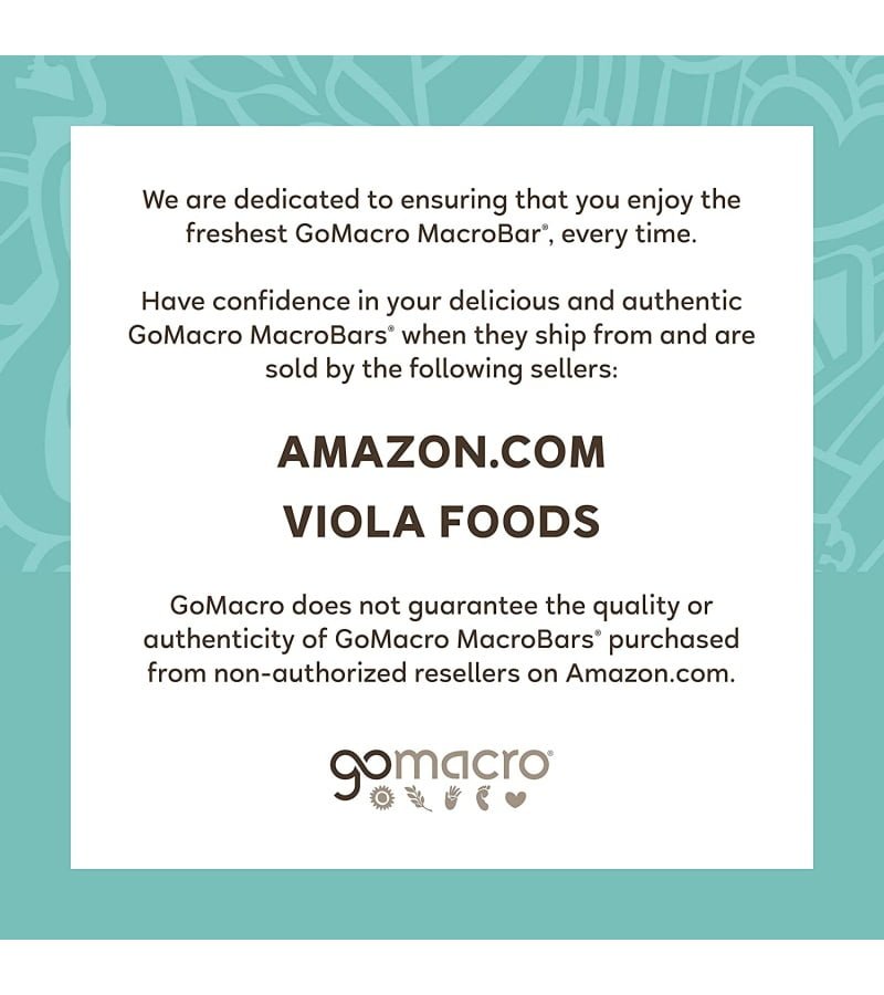 CERTIFICATIONS YOU CAN TRUST: All GoMacro protein bars are Certified Organic. Vegan. Gluten-Free. Kosher. Non-GMO. C.L.E.A.N.. and Soy-Free so you can snack with confidence. If there were a certification for delicious. we’d have that too!