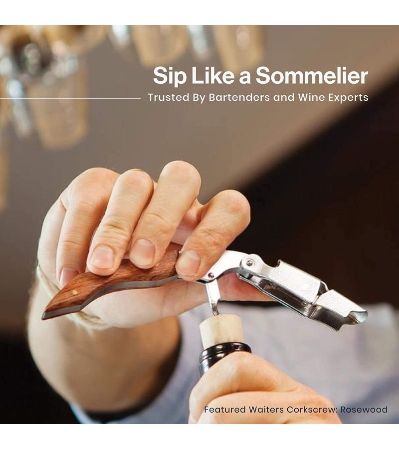 SERRATED FOIL CUTTER – The built-in. serrated edge on the built-in wine foil cutter allows for seamless cork removal. The go-to all-in-one wine opener set for waiters and wine lovers everywhere.