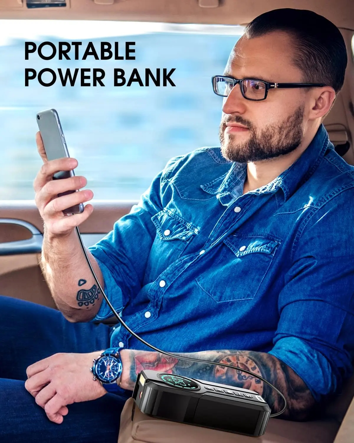 - ??IMPROVED SAFETY TECHNOLOGY??Safe and easy to use car jumper starter portable without the worry of incorrect connections or sparks. Particularly spark-proof reverse polarity protection over-current protection high-temperature protection over-load protection. Safely connect to any 12-volt automotive car battery. The specially designed indicator notifies you of incorrect use with an audible buzz and flashing lights.