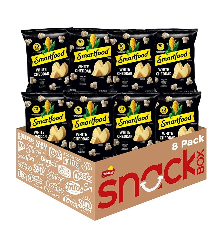 Includes 8 (2oz) bags of Smartfood White Cheddar flavored popcorn
