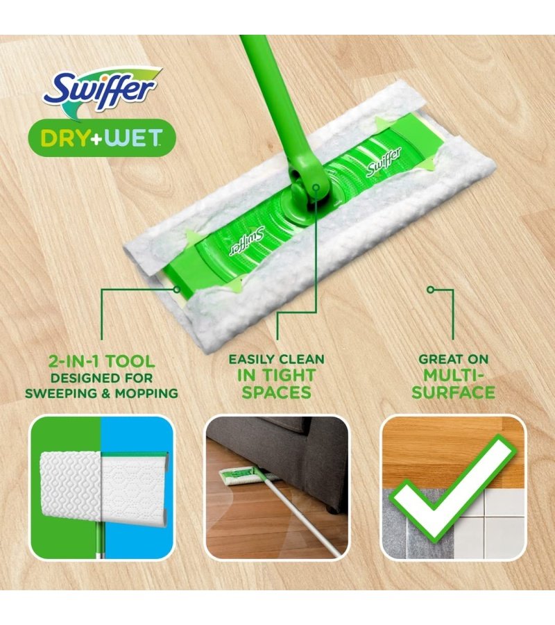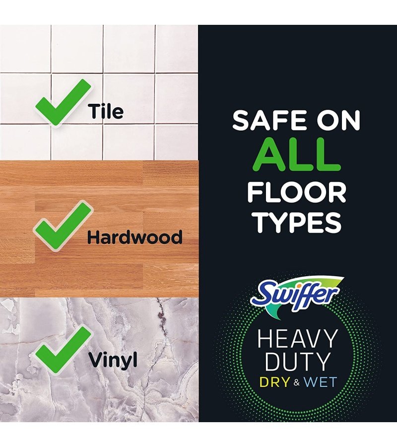 Swiffer Heavy Duty Wet Mopping Cloths Trap + Lock 50% more dirt* allowing you to quickly and easily clean all your hard floor surfaces. *vs. Swiffer wet mopping pad